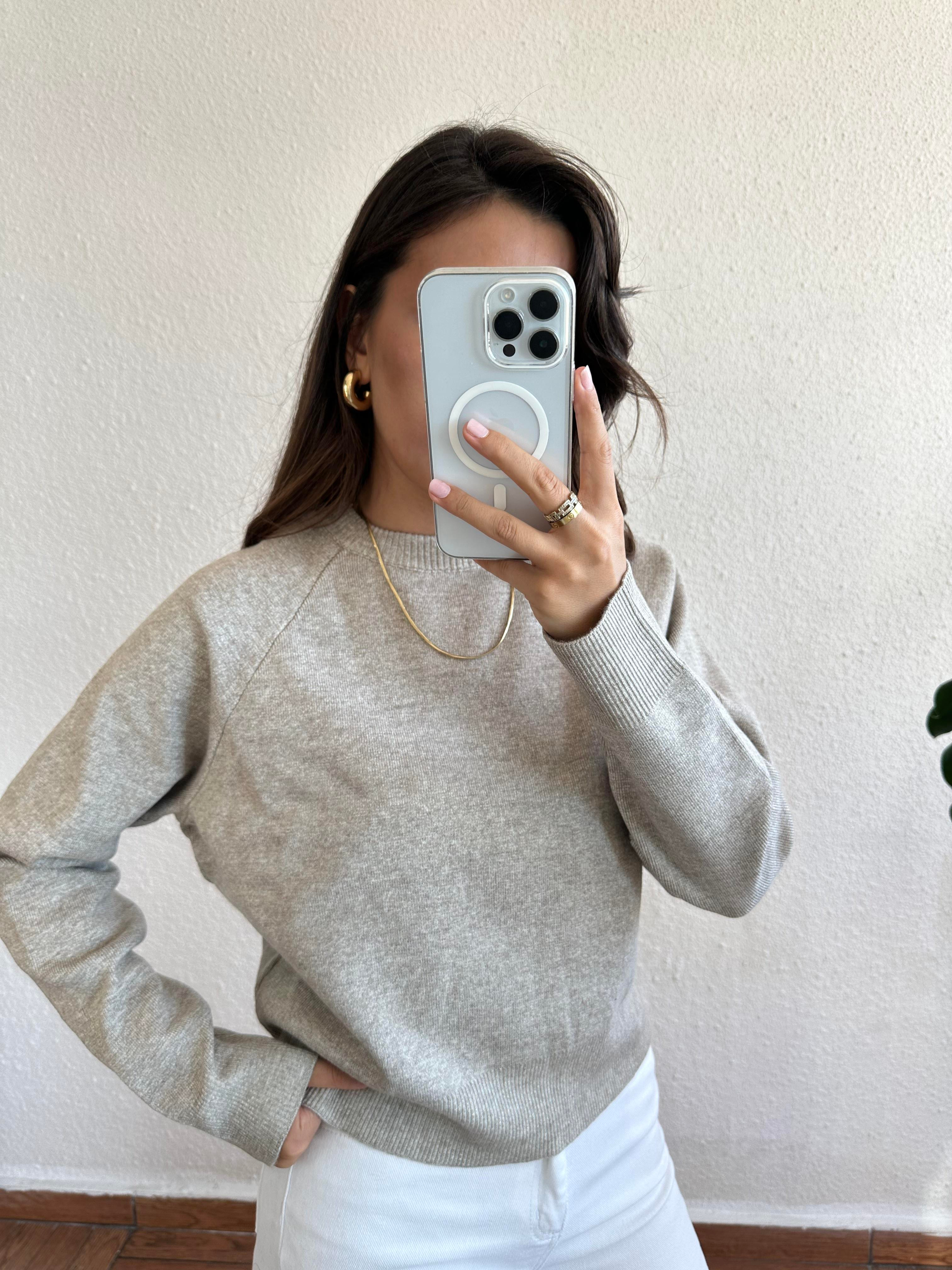 Bisiklet Yaka Triko Kazak - Açık Vizon