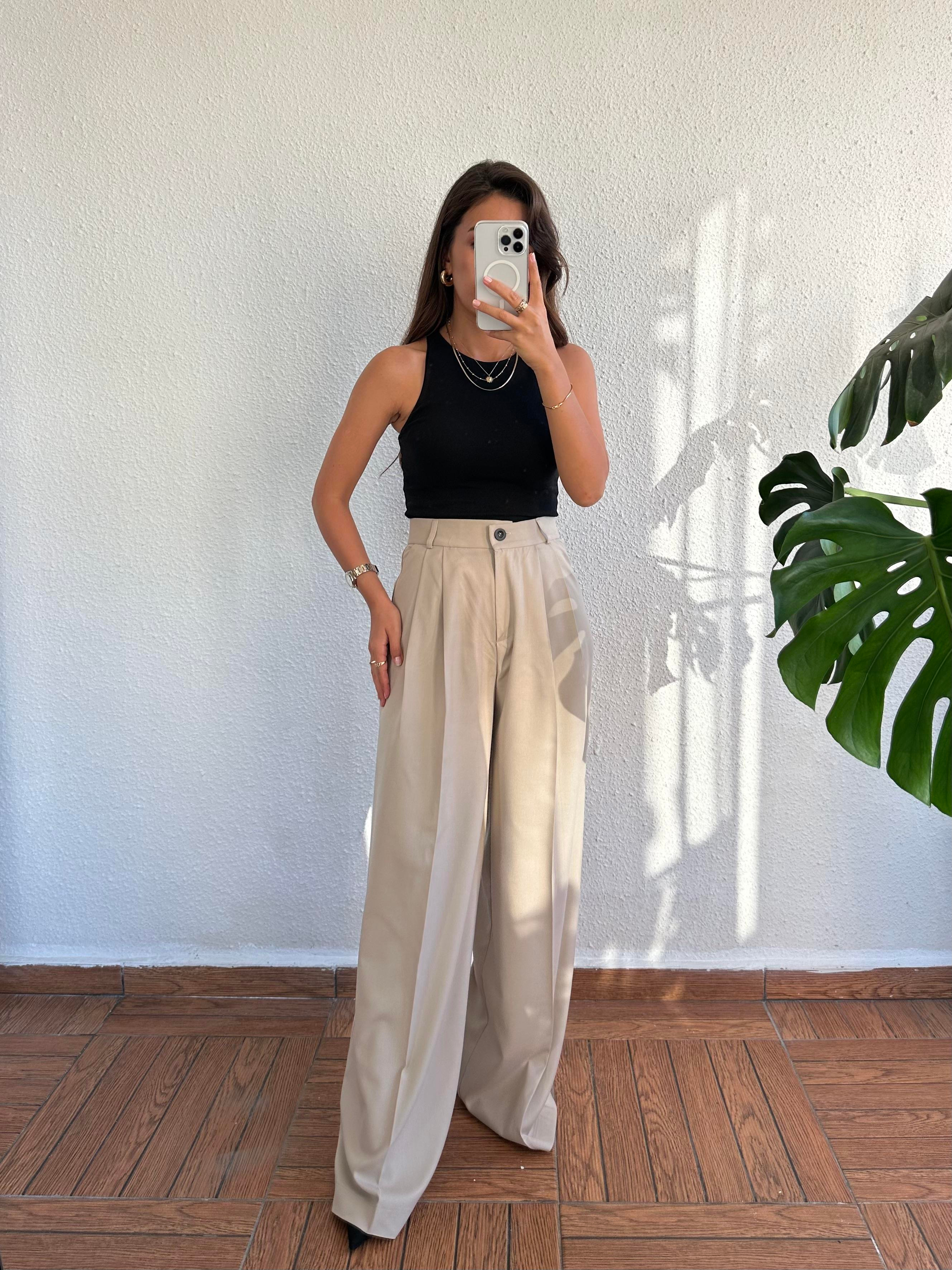 Pilise Detay Palazzo Pantolon - Taş